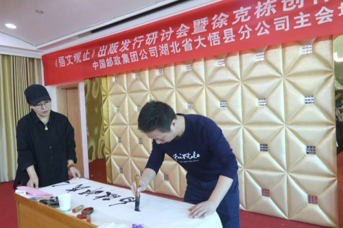 会议期间组织了广东汕头市著名书法家陈业宏老师、大悟籍书法家杨灵芝老师夫妇现场书法、题字,还安插了湖北著名农民歌手陈喜安演唱的自创歌曲。