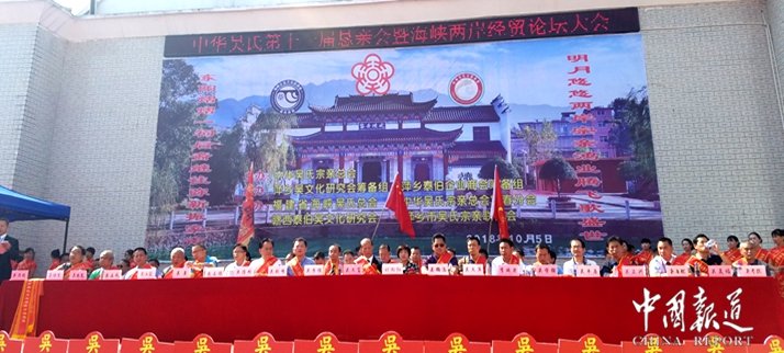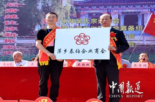 中国报道讯(吴蜀丰江西萍乡报道)由中华吴氏宗亲总会主办,江西萍乡市吴文化研究会筹备组,泰伯企业商会筹备组承办,福建省海峡吴氏企业总会,中华吴氏宗亲总会宜春分会,赣西泰伯文化研究会,萍乡市吴氏宗亲联谊会协办的中华吴氏第十一届恳亲大会暨海峡两岸经贸论坛今日,(2018年10月5日)在江西萍乡芦溪县芦溪镇东阳村吴氏宗祠成功举办。