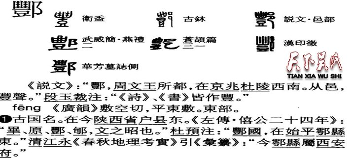 唐朝时期,京城建于长安,是当时酆氏族人聚集最多的地方。据典籍《辞海》的注释,酆侯之地古名为“鄠”,位于长安西南,涝水东岸,夏时扈国,秦为鄠邑,汉置鄠县,即今陕西省户县。这便是全国酆氏人家最早的发源地。追溯中国的历史,在周朝以前没有这个“酆”字,至周文王分封第十七子酆侯之后,“酆”字开始出现,只有两种意思:一是姓氏,二是地名。