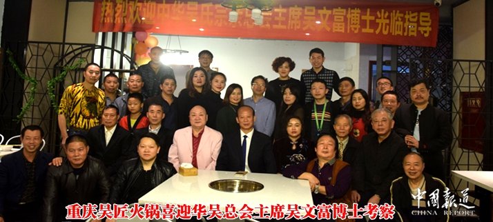 中国报道讯(吴蜀丰重庆报道)今日〔10月12日〕天下吴氏网总顾问、晋江国际商会副会长金冠食品(福建)有限公司董事长、世界至德经济贸易合作促进会副总裁、中华吴氏宗亲总会主席吴文富博士前往重庆吴匠火锅考察。