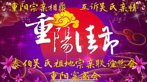 在此两九相重吉祥来临之日,让我们大力弘扬尊老之德、颂老之恩、敬老之情、助老之义、爱老之心、养老之乐的优良传统美德!愿这份满满的正能量在我们吴氏家族永远延续下去………