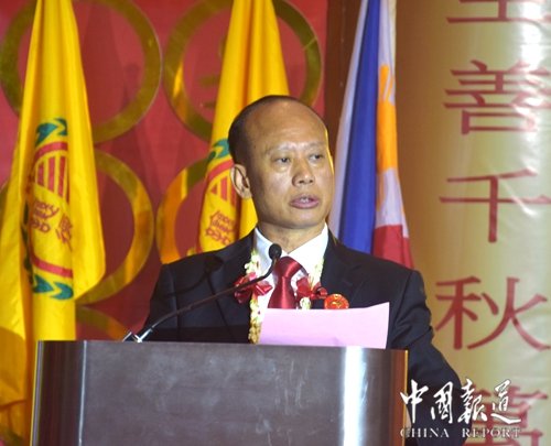 中国报道讯(吴蜀丰 菲律宾报道 特约采编 吴乾山 吴建东)天下吴氏一家亲,全球吴氏心连心。菲律宾让德吴氏宗亲总会创会110周年庆典盛会10月21日在菲律宾万豪国际大酒店隆重举行,由菲律宾让德吴氏宗亲总会理事长吴俊民担任主席并致欢迎词,菲律宾让德吴氏宗亲总会荣誉会长吴聪满博士当主讲人,中国代表团团长、中华吴氏宗亲总会主席吴文富博士,中国台湾地区代表吴丰山,中国香港地区代表吴天赐,世界至德总会吴希民主席先后致词,菲律宾让德吴氏宗亲总会名誉会长吴辉汉当介绍主讲人,副理事长吴荣南当介绍主讲嘉宾,菲律宾让德吴氏宗亲总会执行副理事长吴启发最后致答谢词,中华吴氏宗亲总会秘书长吴谨程在欢迎宴会上及国外宗亲代表先后发言。