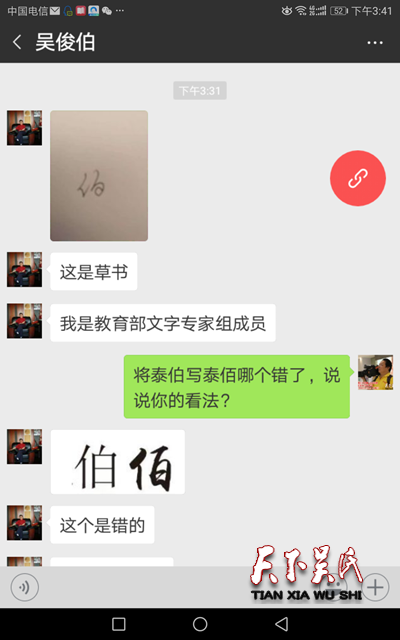 中国春晚十大悬空书法家吴力嘉:关于厦门市吴文化研究会"第四届泰伯论坛"主题标语中的泰伯写成了″佰"字,是明显的错别字,查查各种泰伯字的草书便知,它上面没有一横的吗,怎么能这样的写?在上面加一横?这样泰伯公意思搞错了啊,很多书法家没有用心的去研究,将伯写成佰不是笔误。做为一个书法家,写错了字要勇于承认错误,在吴氏宗亲面前检讨一下自己,否则会贻笑大方,让天下人耻笑!