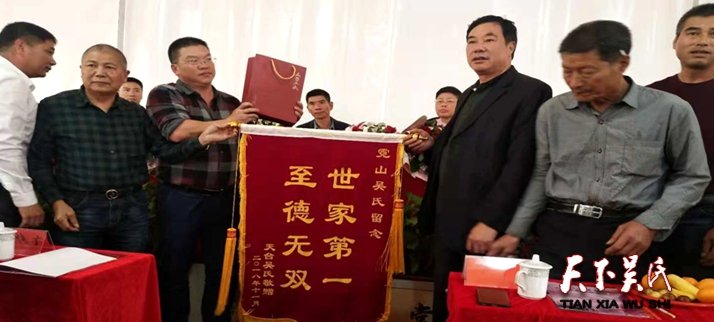 天下吴氏讯(特约采编吴忠言吴忠致)11月4日,在这秋高气爽,瓜果飘香的日子里,浙江省台州市金清霓山吴氏宗祠召开吴文化传统教育基地授牌盛会,到处是彩旗飘扬,锣鼓喧天,嘹亮的吴氏颂歌响彻云天,还有一群小朋友手拿小红旗列队迎接各地宗亲的到来,欢聚一堂共同鉴证这有着深远意义的一刻。贵州省吴氏宗亲总会会长,贵州省老吴台酒业集团董事长吴学强率团亲临现场,捐赠“老吴台”美酒十件,共六十余瓶,为此次盛会添砖加瓦,同时也为弘扬吴文化而奉献其中。