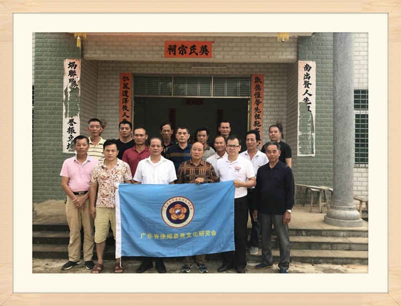 中午十二点半,代表团返回南山镇良埚,在吴氏祠堂,大家一起翻阅良埚吴氏族谱,据该支谱记,该支始祖为吴懋德,原籍福建莆田,唐代圣历年(698年)戊戌科进士,奉命特受琼州府(海南省)文昌县任知县,退休后责居雷州北潭村,开基创业,懋德公14世特窝公第四子珠梁、六子珠僡移居徐闻县良埚开基。目前该支在徐闻子孙约1000人左右。