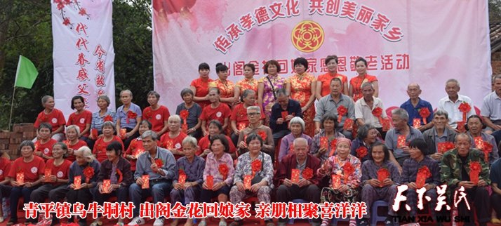 天下吴氏讯(吴蜀丰 廉江报道 特约采编 吴桂英 )欣逢盛世紫气东来,齐齐欢聚喜气洋洋,人逢喜事精神爽,喜洋洋。在这个充满喜庆祥和的吉日,今日(11月5日),廉江市青平镇革命老区乌牛垌村,锣鼓喧天,鞭炮齐鸣,红旗招展,彩带飞扬。一批吴氏出嫁女怀着感恩的心相约回到久别的娘家欢聚一堂引来众亲祝贺。