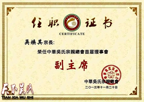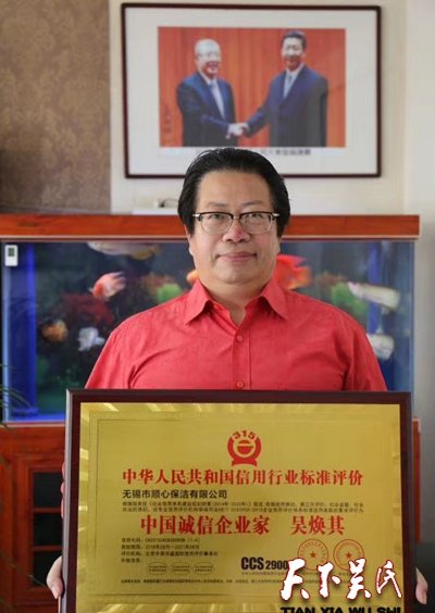 无锡顺心保洁董事长吴焕其赞助天下吴氏网壹万元