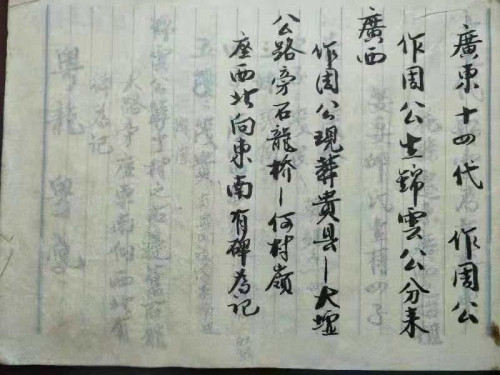 我们的族谱记载从花县迁广西,但没记载花县的具体地名,口传是梅县水车圩石崇堡,我老爸1926年出生,92岁,还健康,和多位前辈一直都说是梅县水车圩,还说是他们的前辈传下来的。