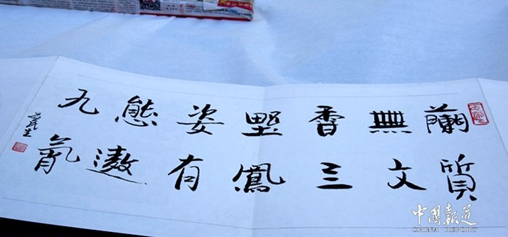 作品功力底气十足,特别是行书,挥洒自如,章法格局与众不同,用笔流畅,气势贯通。隶书吸收了曹全、乙瑛、张迁的神韵,结合自己对碑贴的理解,以雄浑、厚重、古朴、大气、多次呈现于国内报刊、杂志等发表,数件作品被香港、澳门、台湾、日本友人珍藏及书协收藏。