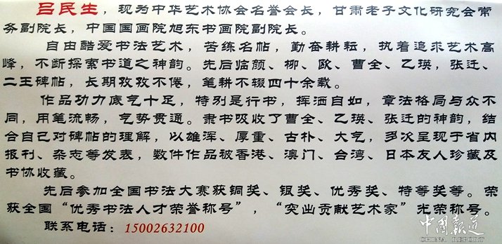 吕民生,现为中国观网一带一路书画院常务副院长、中华艺术协会名誉会长,甘肃老子文化研究会常务副院长,中国国画院旭东书画院副院长,中国官网网民西部书画大家影响力人物,浙江艺道网络科技有限公司艺术家签约艺人。
