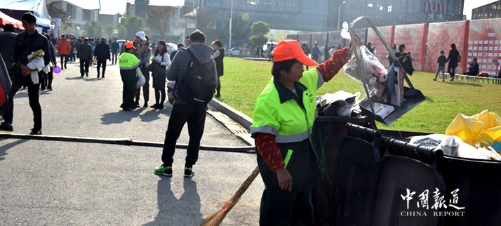 据介绍,全长42公里的赛道所有路面清洁卫生均由顺心保洁服务团队全面负责清理,记者在现场随处可见身着莹光色绿底印有顺心保洁工作服人员,他们骑着工具箱电动车,提着垃圾铲及扫帚,几乎是地毯式的留意巡捡垃圾,哪怕是掉在地面上的一片树叶子,一个烟头或纸屑都不放过……