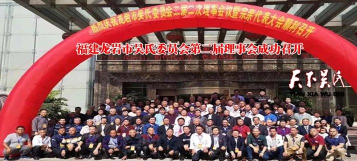 天下吴氏讯(特约撰稿 吴家亮)日前(11月11),龙岩市吴氏委员会二届二次理事会议暨宗亲代表大会在龙岩市新罗区荣顺国际大酒店隆重召开,近两百名龙岩吴氏宗亲代表(其中有60多位理事会成员)参加了本次会议,会议取得了圆满成功!这是我们龙岩吴氏的一大盛事,也是吴氏家族的又一喜事。