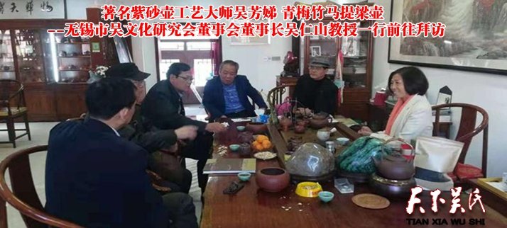 天下吴氏讯(特约撰稿吴建东) 人间珠玉安足取,岂如阳羡溪头一丸土。2018年11月13日,无锡市吴文化研究会董事会董事长吴仁山教授、副会长兼秘书长陈振康教授、常务秘书长戈文辉、办公室副主任吴仁兴一行前往宜兴,对紫砂壶产品考察、调研。拜会了著名紫砂壶工艺大师吴芳娣等陶艺工艺大师们,并与大家座谈。