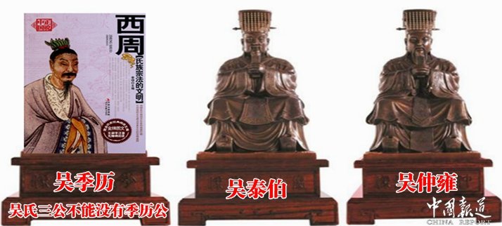 中国报道讯(吴蜀丰重庆报道)近几年来,记者参加各地吴氏宗亲活动达上百场次,祭拜吴氏先祖三公在祠堂供奉的有太伯公、仲雍公、季扎公),却始终不见有季历公像,人人都知道周太王古公檀父有三个儿子,长子吴泰伯,次子吴仲雍,三子吴季历(周文王姬昌之父),为何不见很难见到季历公人像?难道季历犯什么罪而被周太王给废了?其实都不是,懂历史的都知道,是被岳父杀害的,后来季历之子姬昌周文王也灭了商朝,建立周王朝历经800年,太伯公奔江南建立勾吴国,仲雍公承王位至夫差丢失江山,出25代君王,历经748年辉煌历史。