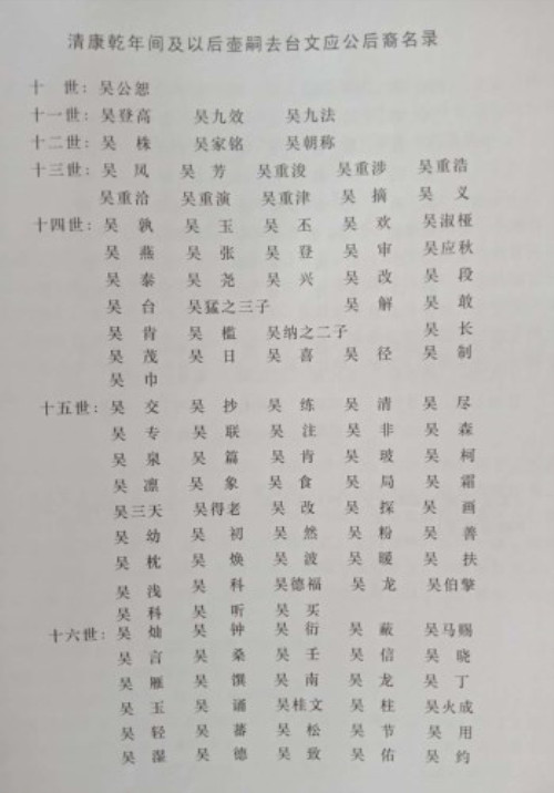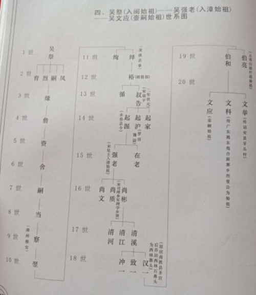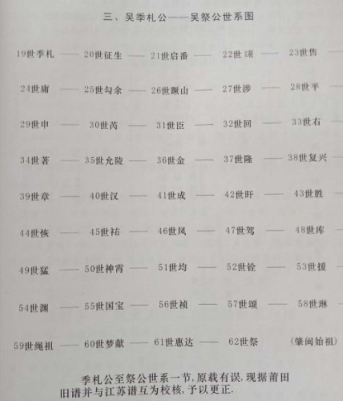 泰伯公、仲雍公——季札公——吴芮公——吴祭公——吴强老公——吴文应公——吴珠——吴凤