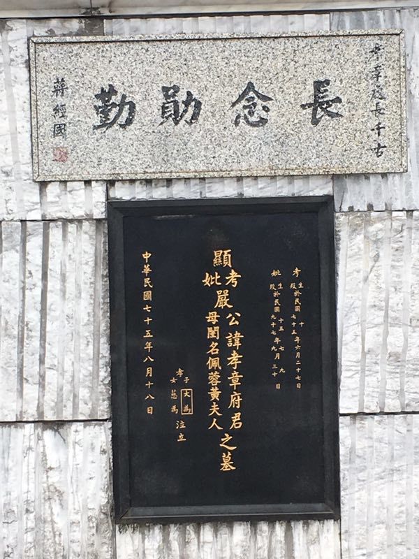 吴梅村先生墓园的左邻是在清末翻译英国生物学家赫胥黎《天演论》的著名学者严复之孙严孝章的墓园。严孝章先生于1942年复旦大学土木工程系毕业,参加驻印远征军。中国抗日战争胜利后,任国民革命军新编第一军新三十师编译室主任。1949年2月,赴台澎筹画台澎防御工事。1952年任陆军总部工程处处长,后入美国兵工学校、哈佛大学高级企业管理研究班进修。1959年退役后,调任行政院国军退除役官兵辅导委员会工程组组长,参与东西横贯公路工程。生前与吴梅村先生是多年的挚友,工作伙伴。两位先生在生前几乎天天见面,在发展经济和台湾的过程中,经常游走世界各国政府,游说友国资助并开发台湾,对中华民国躹躬尽粹。