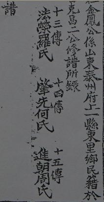 宋朝金凤公下世系