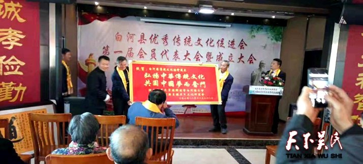 天下吴氏讯(特约撰稿吴世锋 )政通人和,群贤毕至,在这秋高气爽,丹桂飘香的时节,为弘扬优秀传统文化,建设和谐美好家园。陕西省白河县优秀传统文化促进会第一届会员代表大会日前在白河县正式成立,白河县民政局、文联、文化馆、图书馆等领导出席了大会并先后发言及社会各界人士、优秀传统文化爱好者朋友们群贤毕至,参加了本次大会。