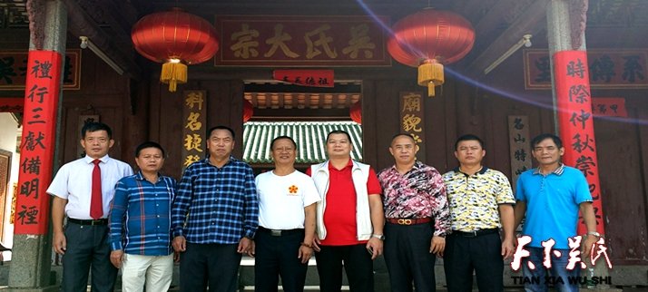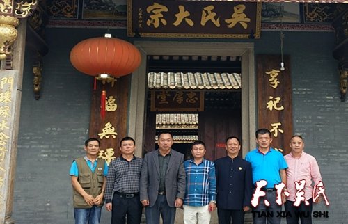 天下吴氏讯(特约采编吴乾山)日前(12月1日至2),应广东吴川市吴阳上郭吴族理事会理事长,吴绍贵的邀请!海口市吴贤秀文化研究会,会长吴名扬,秘书长吴乾山,宗长吴春波、吴富荣、吴坤导、吴君明等一行六人。出席吴川市黄坡水潭慈佑寺大雄宝殿落成暨佛菩萨开光庆典活动,并参观吴阳镇上郭村吴氏大宗祠,进行交流学习!也是两地吴氏宗亲共同为弘扬吴氏文化的繁荣献计献策,促进宗亲情深的美好互动。