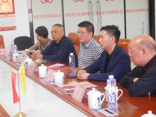 2018年12月1日上午,浙江吴文化研究会执行会长吴道放宗长、乐清吴文化研究会会长吴伊尧宗长、温州市平阳县腾蛟镇金田村大文院吴氏宗祠宗亲代表吴昌近宗长、台州玉环吴氏宗亲代表吴龙宗长,来到位于深圳龙华海韵大厦的深吴会所,访问深吴,第二届世界吴氏宗亲总会会长吴良民宗长、吴小能宗亲,深吴会常务副会长吴松康宗长、深吴会副会长吴裕军宗长、吴鸣镝宗亲热情接待了来宾。