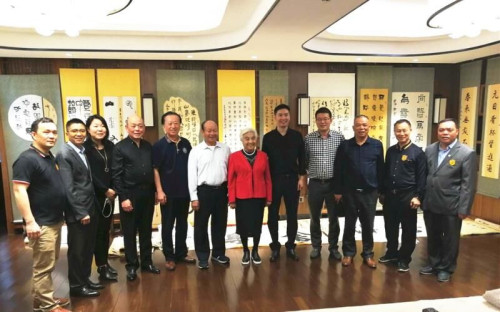 会后,大家来到深圳海韵文化艺术馆,参观了吴体隶书的创始人吴凤银宗长的书法创作室,并合影留念。