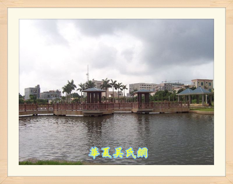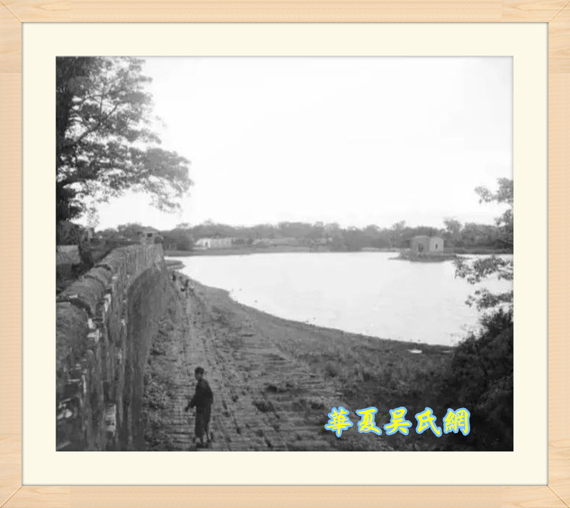 注:“能戴”二字可能有误。水心冰壶——南门塘 南门塘在徐闻宾朴古城南门外,清宣统三年(1911)《徐闻县志》记:南门塘,旧名月池,在县城南门外,明隆庆年间知县谢朝舜买田凿池,万历三年(1575)知县张师益鸠工成之,周围二百余丈,深丈许,中建水心亭,匾曰“水心冰壶”,万历十二年(1584),知县蔡宗周伐石梵砌,清康熙三十四年(1695),知县孙挹复加浚深运石环砌。