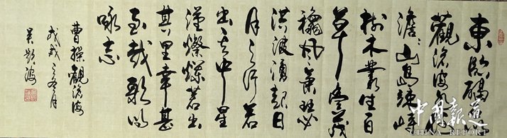 中国报道讯(吴蜀丰)【编者按】吴显海书写的技巧,逆笔、回锋、侧锋、偏锋、虚笔、逆写等谋篇布局,技法出神入化,书若人然,须备筋骨血肉,血浓骨老,筋藏肉莹,加之姿态奇逸,可谓美矣。真乃名家之典范。