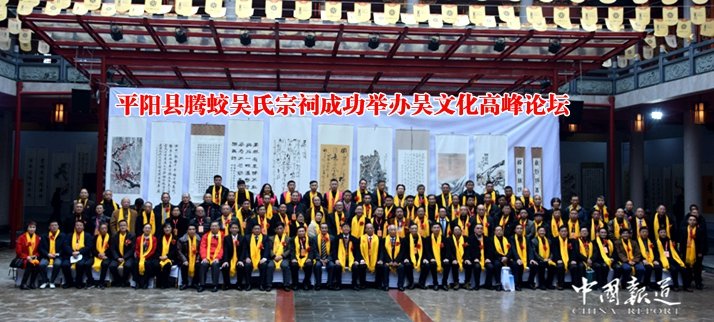 中国报道讯(吴蜀丰 特约采编吴桂英 吴天友 浙江平阳报道)由中国文化信息协会、《中国书法报》《书画天地》浙江省吴文化研究会主办,腾蛟吴氏宗亲联谊会承办,平阳县传统文化促进会至德文化研究会协办的“浙江省吴文化高峰论坛暨腾蛟杯国际书画联谊展”今日(12月15日)在浙江省温州市平阳县腾蛟大文院吴氏宗祠(文化礼堂)正式拉开序幕,36篇有关吴文化论文及200余幅书画作品成为此次活动最具特色看点。