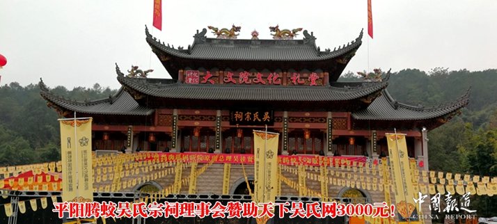 平阳腾蛟吴氏宗祠理事会赞助天下吴氏网3000元!