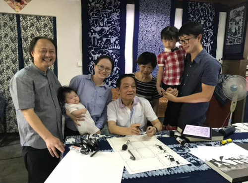 12月21日是一年一度的韩美林日,当天在故宫博物院举办的“韩美林生肖艺术大展发布会”、“韩美林艺术讲坛”等系列活动中,韩美林艺术基金会再次资助南通蓝印花布博物馆传承资金十万元,支持吴元新全家四代传承。吴元新应邀参加了在故宫举办的系列活动,并上台接受捐赠,这已经是韩美林艺术基金第四次向蓝印花布博物馆资助非遗传承保护资金。