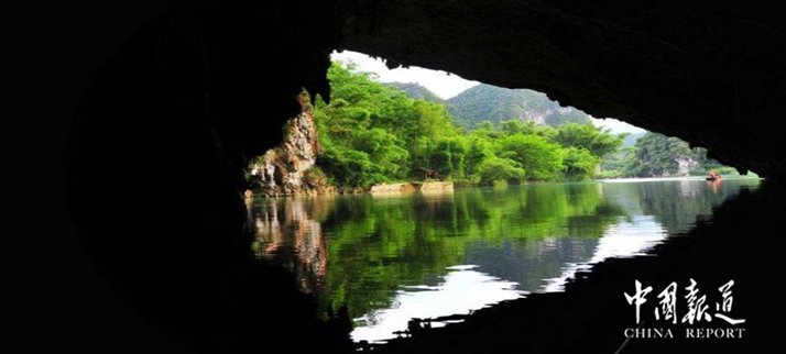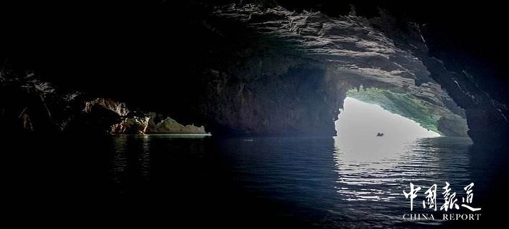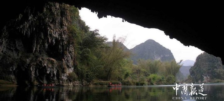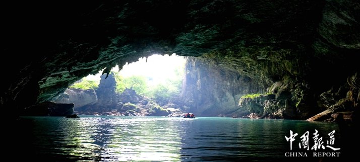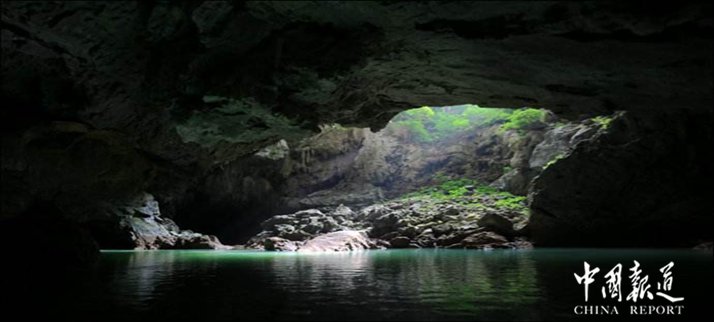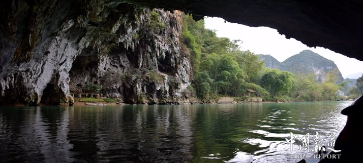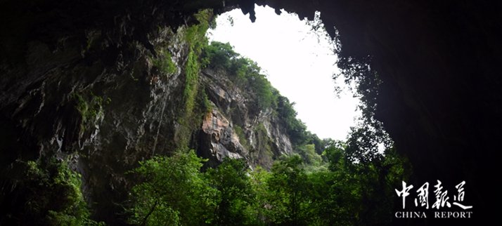 中国报道讯(吴蜀丰 广西巴马报道 )【编者按】百鸟岩,又名水波天窗、延寿洞,龙虎洞。位于广西巴马瑶族自治县甲篆乡烈屯西北面的漠斋山下,该洞是个独特的地下河溶洞,是大自然几亿年来的“杰作”。百鸟岩的成因主要是在地下河水对漠斋山不断的溶蚀、浸蚀、崩塌的漫长过程中扩大而形成。因洞内燕子栖集,蝙蝠掠飞,又名百鸟洞。