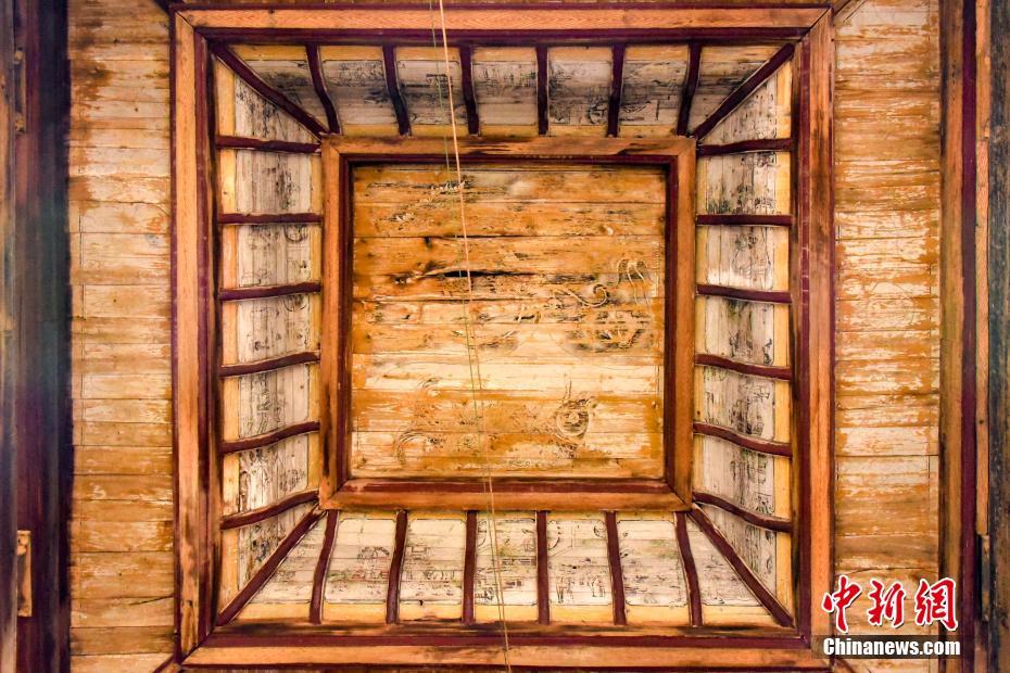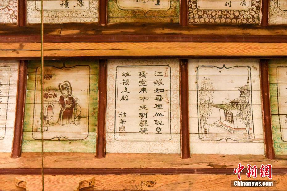 12月1日,江西省遂川县禾源镇三溪村一吴氏祠堂,尚存的古字画,清晰可见,不失其精美。中新社发 肖远泮 摄 图片来源:CNSPHOTO