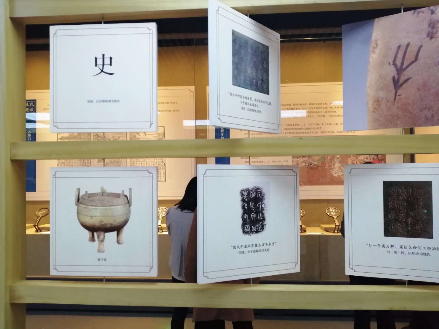 五千年来,姓氏文化经过历史的积淀,与民族精神融为一体,这种积淀对于现实社会有着无法估量的作用。本次展览以中华姓氏源流为主题线索,共分为“姓氏来源”“改易姓氏”“稀见姓氏”“姓氏趣谈”四个单元,展示了不同姓氏所记录的精彩纷呈的传奇典故与鲜活动人的生命情怀。展览侧重知识性和趣味性并重,不仅梳理展示了“改易姓氏”,如少数民族改汉姓、帝王赐姓改姓等;还展示了部分生僻稀见姓氏,如卜、贡、漆等姓。此外,在“姓氏趣谈”单元中,还讲述了姓氏始祖伏羲氏规定同姓不婚,以及世人误称吕尚为“姜太公”等趣味故事。