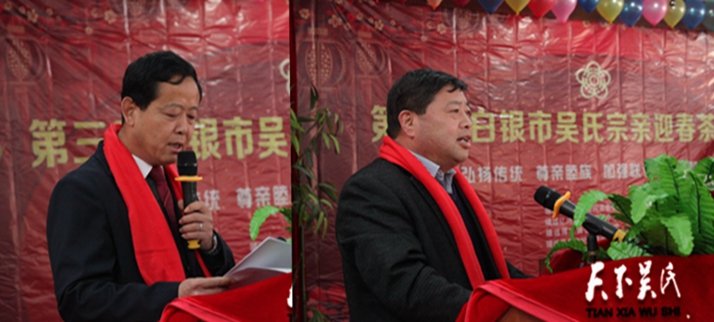 第三届白银市吴氏宗亲迎春茶话会由白银市吴氏文化研究会(筹)主办;靖远北滩吴氏宗祠管委会、靖远亿鸿堂健康调理中心、靖远博缘商贸有限公司、靖远吴氏枸杞大枣经营部联合承办。近年来,白银市吴氏文化研究会(筹)积极响应党和政府弘扬中华优秀传统文化号召,动员和团结白银吴氏宗亲着力做好全面复兴中华优秀传统文化,弘扬吴氏文化,传承至德精神各项工作,积极开展弘扬祖德、传承文明、敬老爱幼、尊亲睦族、乐善好施、鼓励奖学等活动,取得较大的收获。先后在白银、景泰两县区成功组织召开了两届迎春茶话会,极大地调动了白银吴氏宗亲参与弘扬优秀传统文化的热情。第三届白银市吴氏宗亲迎春茶话会在吴华、吴冠金、吴育荣、吴雪、吴玉淑等宗亲的积极承办和各地宗亲的踊跃参与下,得到如期胜利召开。当天,白银市辖属白银、靖远、景泰、会宁、平川各县区的近300名吴氏宗亲,以饱满的热情,怀着美好愿望和期待,不惧严寒,不顾旅途遥远,从四面八方相约汇聚甘肃靖远县城,以“弘扬传统,尊亲睦族,加强联谊,构建和谐”为主题,开展宗亲联谊,弘扬吴氏文化;感受家的温暖,享受精神的滋润。用心感受亲情,释放心中的情怀;用爱融化冰雪,努力营造吴氏一家亲的浓厚宗谊氛围。