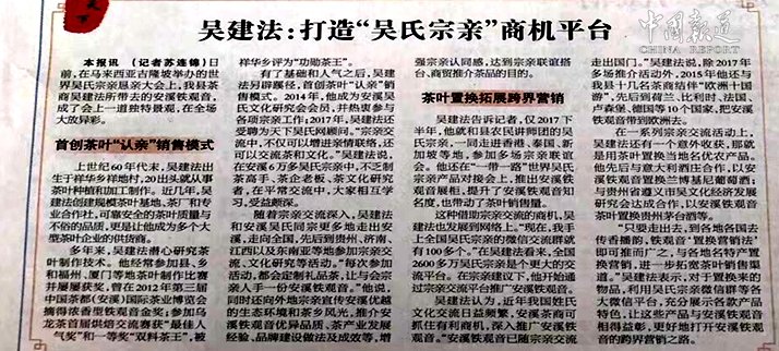 以吴氏宗亲为纽带,开辟茶叶认亲销售模式。