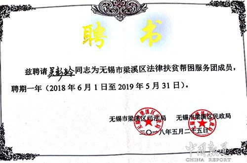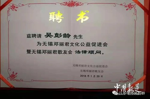 中国报道讯(吴蜀丰江苏报道 特约通讯员陈朴)原标题《吴彭龄:奉献在建设法治中国第一线的优秀公益律师》多次与江苏仁勤律师事务所的一位律师交流谈心。每次总是会遇到他接到电话。其中大都是向他提出法律咨询,而他总是不厌其烦地回答对方。其中一次我们在宜兴,正好用餐时,他接到电话后认认真真地回答对方超过了15分钟,等到结束时饭也凉了。这位老律师认识的人太多,人们可以通过网上多个平台找到他,只要有问,他则必答。他就是不久前被评为无锡市优秀公益律师的共产党员吴彭龄同志。作为公益律师,吴彭龄当然并不是仅仅回答人们提出的法律问题,他眼下担任的各种免费服务的如“天下吴氏网”、“江苏邮轮会”等等资源共享平台法律顾问的“头衔”少说还有10多个。