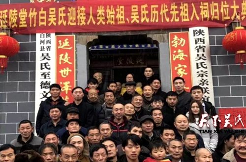 陕西省吴氏宗亲联谊会会长、陕西吴氏至德文化发展有限公司董事长吴风平我谨代表陕西省吴氏宗亲联谊会;陕西吴氏至德文化发展有限公司;《陕西吴氏宗谱》编委会;陕西省150万吴氏宗亲致以热烈的祝贺和衷心的感谢!在致陕西省吴氏宗亲联谊会白河分会;白河县吴氏至德文化研究会;全体吴氏宗亲公鉴贺信中说:时至戊戌岁末,喜知白河县吴氏宗祠落成,并在今天举行庆典,恭迎先祖入祠大礼仪式,倍感激情沸腾,因为这一天她来之不易,白河县吴氏宗亲在一无所有、无依无靠,缺少资金的实际情况下,在吴昊、吴世锋、吴世勇、吴经勇等宗贤的领导和带领下,不怕困难,团结一致,奋发图强,自力更生,无怨无悔,用满腔热血,以实际行动践行先祖太伯的至德精神,在他们身上真正体现出来谦让、务实、开拓、奋进的高尚品质,不仅修成了《吴氏宗谱》,还耗时两年复修建成了吴氏宗祠,实乃喜事,来之不易,功德无量,功在当代,利在千秋,必将永世流芳!水宗源,树本根,国有史,人有宗。寻根溯源,追远念祖,孝亲敬祖,团结友爱,继往开来,乃人伦之大矣。今天,是白河县吴氏宗祠落成庆典暨恭迎先祖入祠大礼的喜庆日子,也是近百年来陕西吴氏的第一桩喜事,不仅可喜可贺,更是可歌可泣,丰功伟绩列入记载,千秋万代永铭不忘!