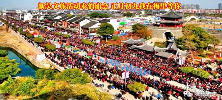 “江南源·吴歌里·春在梅里”—— 2019泰伯庙会,将从2月11日(正月初七)持续至2月19日(正月十五),举办泰伯家祭、泰伯庙会新吴文旅活动周启动仪式、大型民俗巡游、传统商贸活动、名特优商品展、文旅系列活动、吴地民间艺术展演、市民文化周活动、灯谜会等近十项活动,组织形式多样,内容丰富精彩纷呈。