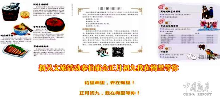 “江南源 吴歌里 春在梅里”2019泰伯庙会新闻发布介绍,梅村素有“江南第一古镇”的美誉,是吴文化的发祥地。每年正月初九,江南吴地人民都要为纪念祖先泰伯而举办盛大的“泰伯庙会”。自2003年起,梅村人民在传统泰伯庙会的基础上,融现代手法于传统习俗,每年举办一届泰伯文化节,持续成功举办了第十届泰伯文化节。