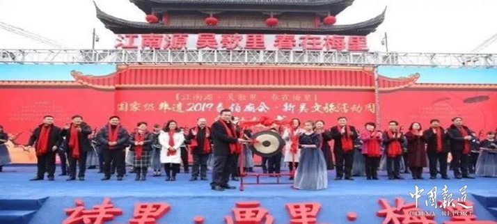 中国报道讯(吴蜀丰新吴区报道特约撰稿 梅梅 笑行 小花 朱达)今天(2月13日)上午九点,在江苏无锡新吴区梅里古镇中华德城广场,“江南源·吴歌里·春在梅里”国家级非物质文化遗,2019泰伯庙会暨新吴文旅活动周启动仪式隆重举行。