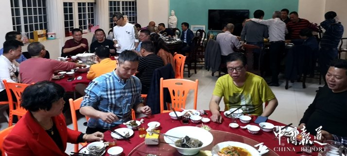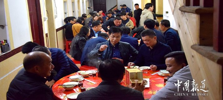 新年,正月初六茶话会上,无所谓高风懿范,游子相聚一堂,您只想把自己的根,与茶树和乡音一起,种进山的心里,您对家乡的熟稔和愛恋以及感恩和回报,乡音乡情乡的愛,连着血脉,连着骨骼,游子们的爱,播种在世界异地他乡,墩坂闯世界,知天下三分事。