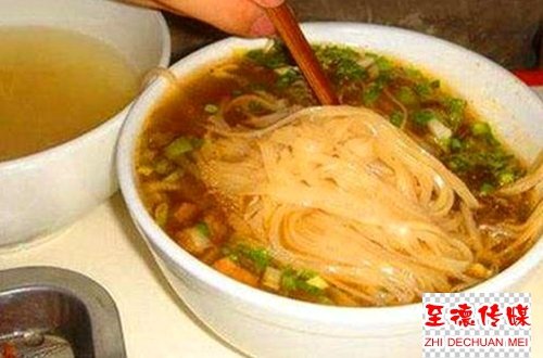 吃蛟汤面时的所谓“不喝汤”,就是将汤回转在畅口的铁锅中煎滚,高温杀毒灭菌,使汤中的调和更加衔接咬合,汤的香味回味无穷。只吃面不喝汤后来成了岐周人待客的约定成俗。客食数十碗乃百,足以见主人待客之诚心。吃浇汤面的要害是品尝汤汁的味道,每碗面条仅仅一筷头,汤汁一定要淹没面条,就是要“吃”汤,而非吃面。这种仪式,传承着岐周大地上来自周公制礼的贵族风范。岐周之地上的人吃蛟汤面的那一种优雅、得意,溢于言表,当把面条挑在筷头,头微微一偏,“呲溜”一声,一口一碗,端面人还没转身,碗中早已无面条,嬉戏声不绝于耳,和谐气氛弥漫庭院。