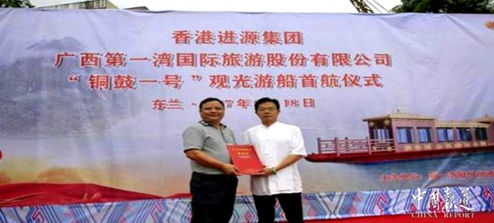 中国报道讯(吴蜀丰 广西报道 特约通讯员 覃源 黄丽桃)为强力助推东兰旅游业发展,打造红水河“一带一路”游船观光和第一湾生态旅游,推进巴马长寿养生国际旅游区建设步伐,广西第一湾国际旅游股份有限公司自2017年8月18日在东兰红水河隘洞御码头举行“铜鼓一号”游船首航仪式至今运营良好并成为红水河上亮丽风景线。