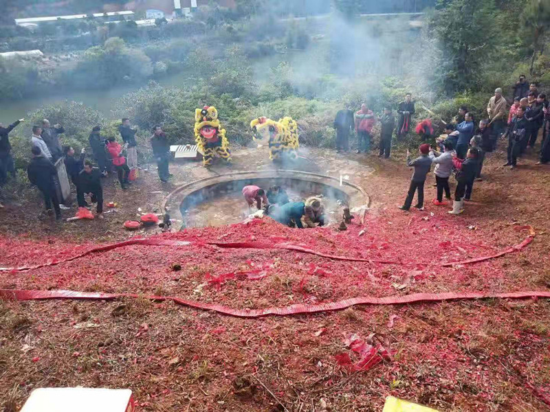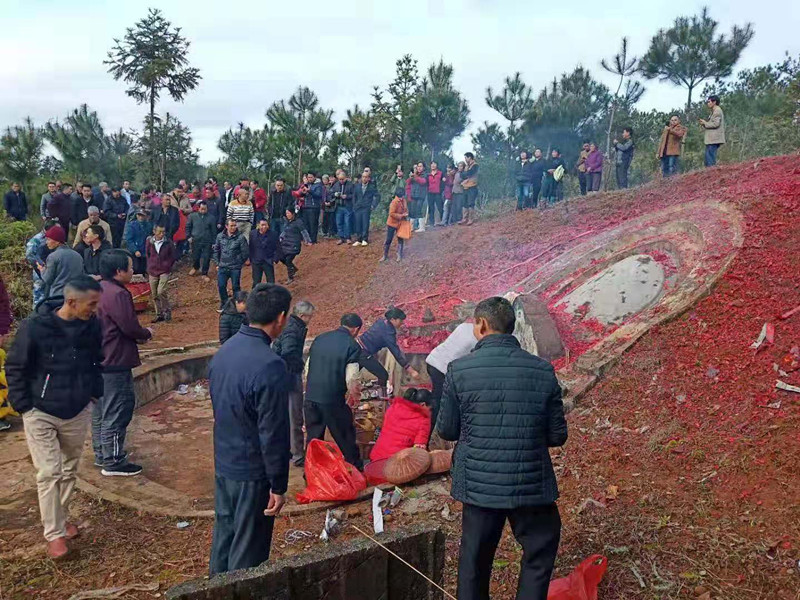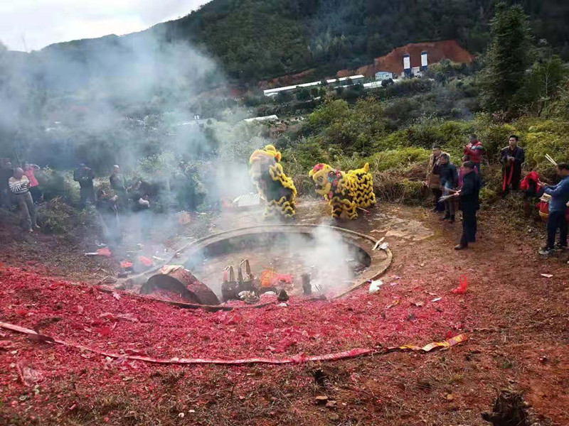 上午九点整,宗亲们在宥公墓前进行祭祀仪式,始兴的宗亲舞狮助兴,鞭炮齐鸣,礼炮齐放,场面热闹非凡。