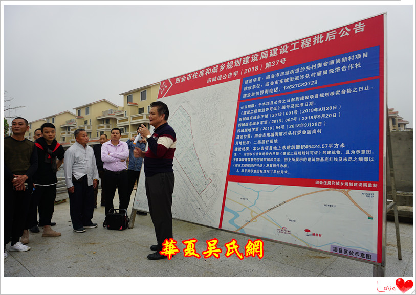 会前,参加珠三角吴氏宗亲会新春联欢会的吴氏宗亲参观了肇庆四会市东城街道沙头社区丽岗新村的新农村建设,吴秋良书记及村委班子领导一边带宗亲们参观一边进行讲解,吴秋良书记说:“沙头社区这几年来,根据党的十九大及四会市委、市政府和东城街道指示精神和部署,高起点,高标准地把丽岗新村打造成社会主义新农村建设示范点。丽岗新村现在村民543人,共有160户,目前已建设了160套单元占地面积80平方楼高三层半的现代化民房,做到了每户一套,丽岗新村新农村建设楼房主体工程造价约7565万元,基础设施配套工程造价约1500万元,丽岗村村民自筹丽岗新村新房屋资金7565万元,是四会市唯一一条自筹资金开展社会主义新农村建设的自然村。”丽岗新村在建设过程中做到:统一规划、统一风格、统一办证、统一建设、五线下地,我们在参观中看到,整个丽岗新村楼房布局合理,风格划一,美观大气,非常漂亮,好象走进碧桂园小区一样的感觉。