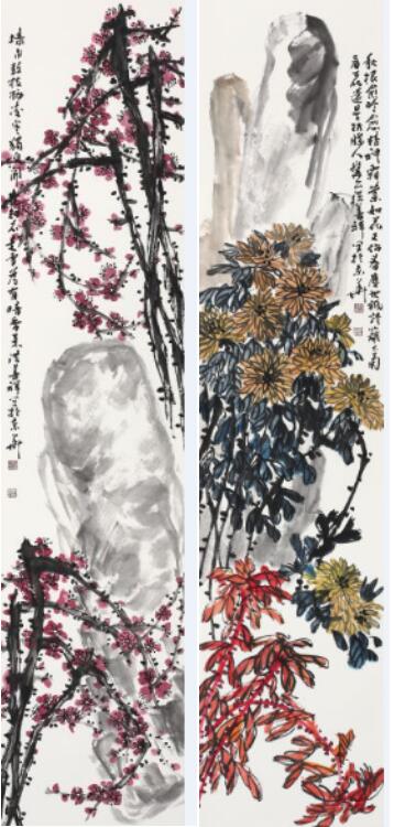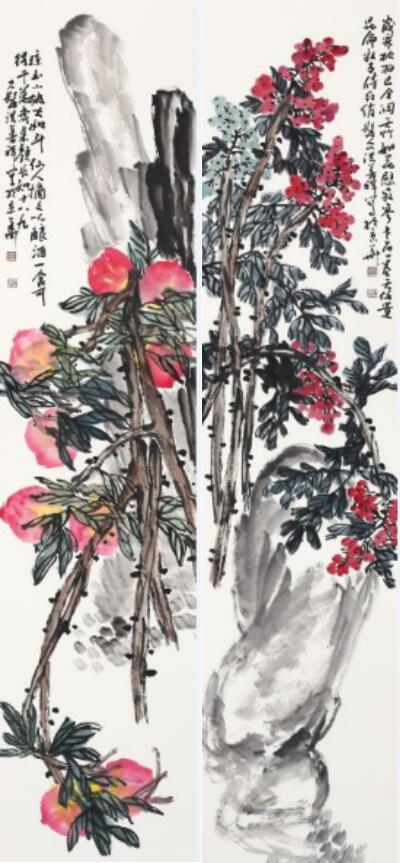 洪善祥的大写意花鸟画与他的书法气息相通,每幅作品都透着金石气息,雄放有力,刚柔圆厚,秀韵天成。