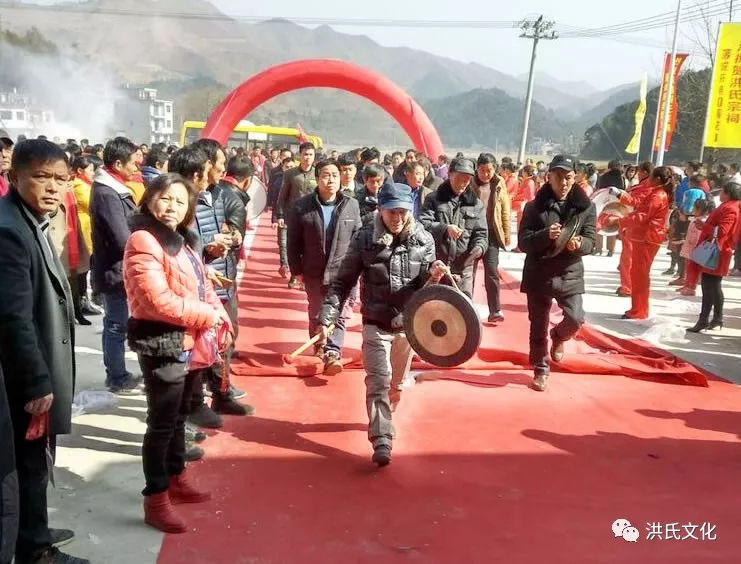 同根同祖,共济共荣,宗祠重建胜利竣工,不仅是洪家源族宗欢庆的一大喜事,也是整个洪氏家族的大事,预示着宗族的兴旺发达,寄托着族人的精神信仰,敲锣打鼓,齐来庆贺。