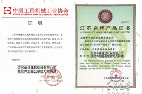 申锡公司是中国高空机械与吊篮产业联盟和江苏高空机械吊篮的会长单位,也是吊篮、擦窗机的研发中心、生产基地,同时还是江苏省高新技术企业,担当着行业内的标准制定、检测和培训工作。还承担了国家“十一五”和“十二五”科技支撑计划项目课题、国家科技型中小企业创新基金、火炬计划等诸多国家重点项目的研究工作。并因此分别荣获了2012年“中国城市规划设计研究院CAUPD杯”华夏奖、2017年辽宁省科学技术奖等高质量的专业奖项和荣誉。