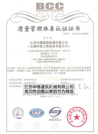 申锡机械有限公司是专业开发和制造建筑机械的高新技术企业。公司创立于1988年,厂区占地面积8万多平方米,建筑面积5万多平方米,总资产逾2亿元。公司具备年产万台套高处作业设备的综合制造能力,始终专注于打造国际高空作业机械优质供应企业。 公司目前的产品主要有ZLP系列高处作业吊篮、电梯安装吊篮、电厂烟囱吊篮、桥梁专用吊篮、船用吊篮、风力发电机配套用吊篮、擦窗机及各类特种非标悬挂作业设备U型平台、L型平台、施工升降机和施工升降平台等。