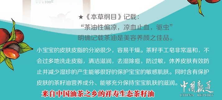 【关于茶籽油】山茶科植物油或小叶油茶的成熟种子用压榨法得到的脂肪油。山茶油提炼于野生木本油科植物果实中,与油棕~油橄榄和椰子并称为世界四大木本食用油树种,也是我国特有的优良乡土树种,我国茶油的食疗双重功能实际上优于橄榄油,除了二种油脂的脂肪酸组成及油脂特性、营养成分相似外、茶油还含有橄榄油所没有的特定生理活性物质茶多酚和山茶甙《即茶皂甙,或称茶皂素》。